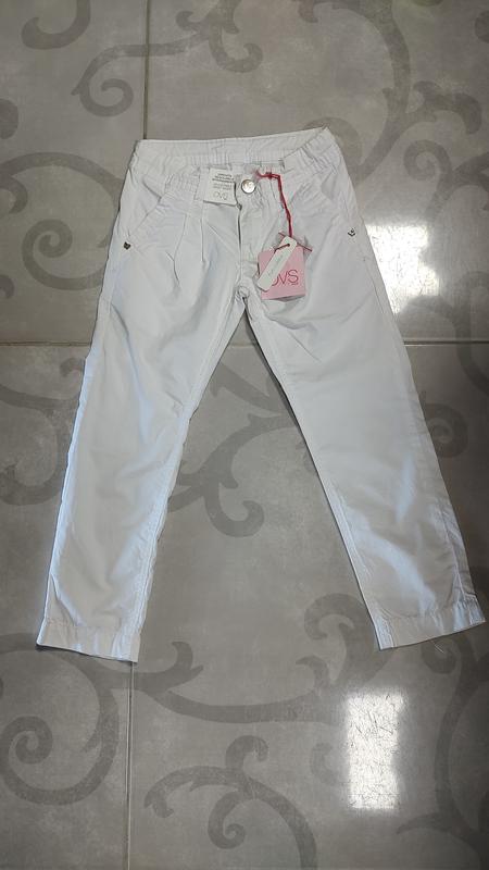 Легкие белые натуральные брюки итальянского бренда OVS на 3-4 года (104 рост), длина 62,5 см, шаг 46 см, пояс 25,5 см.