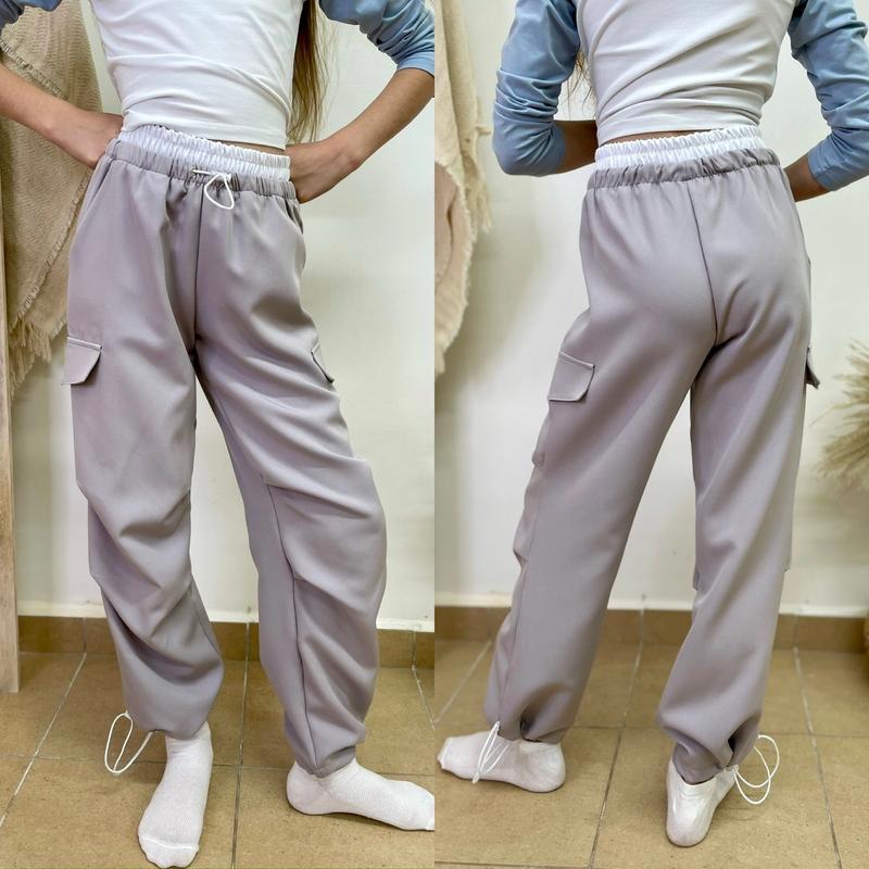 Таня арт 5098 Стильная новинка очень крутые брюки Карго-парашуты Тканина костюмка Есть карманы В поясе резинка и утяжка По низу есть утяжка Качество СУПЕР! Рекомендуем! Рост/длина/шак/пот/поб похибка+-2см 134/81/58/25/42-1шт 140/84/60/26/43-1шт