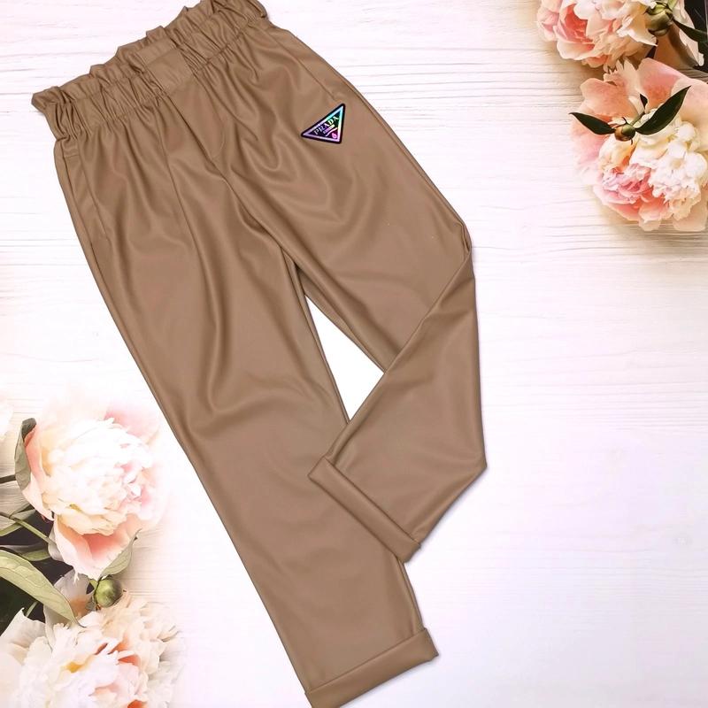 Стильные брюки МОМ для девочек Материал матовая эко кожа Есть кармашки Цвет беж Замеры Длина/шаг/пот 152р - 85/59/31
