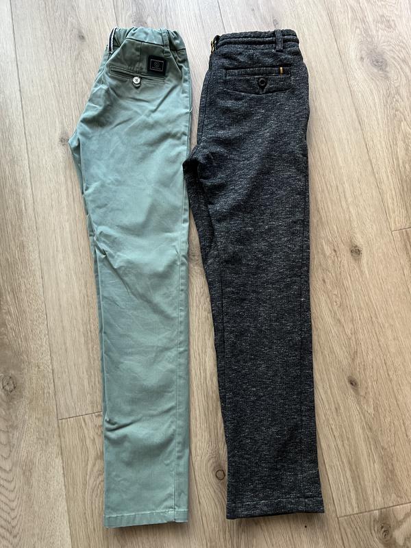 Брюки в отличном состоянии, без пятен и потертостей. Светло-зеленые - модель slim fit (на худи мальчика), пояс на утяжке. Цена 480грн Серые- идут с утеплением (см. фото), пояс на шнурочке Цена 480грн Выстиранные Цена за обе модели 830грн