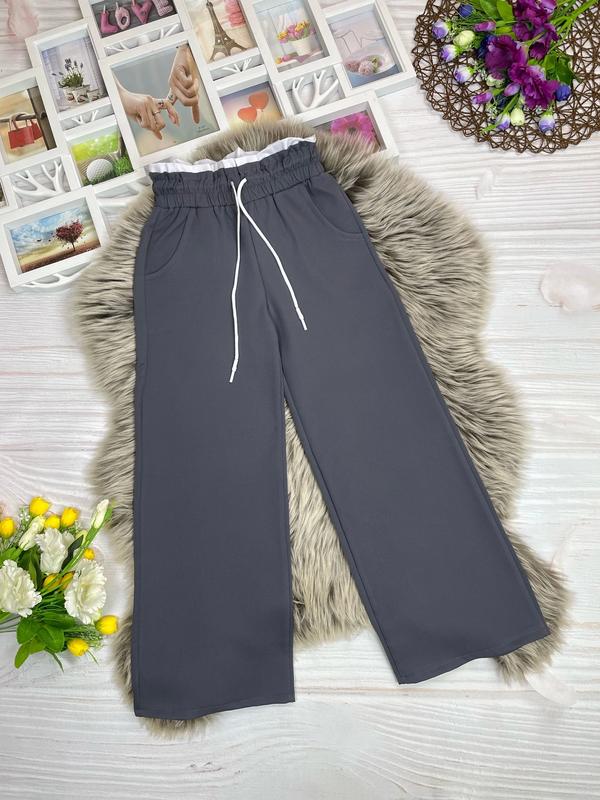 Штаны палаццо для красавиц имеют модный и стильный пояс, красиво тянется есть рабочая шнуровка, карманы Тканина алекс трикотаж, не тягнеться Замеры: длина/шаг/поя 128 - 83/57/27 134 - 85/59/28 140 - 87/60/28 146 - 91/62/28 152 - 95/64/29 артsanya