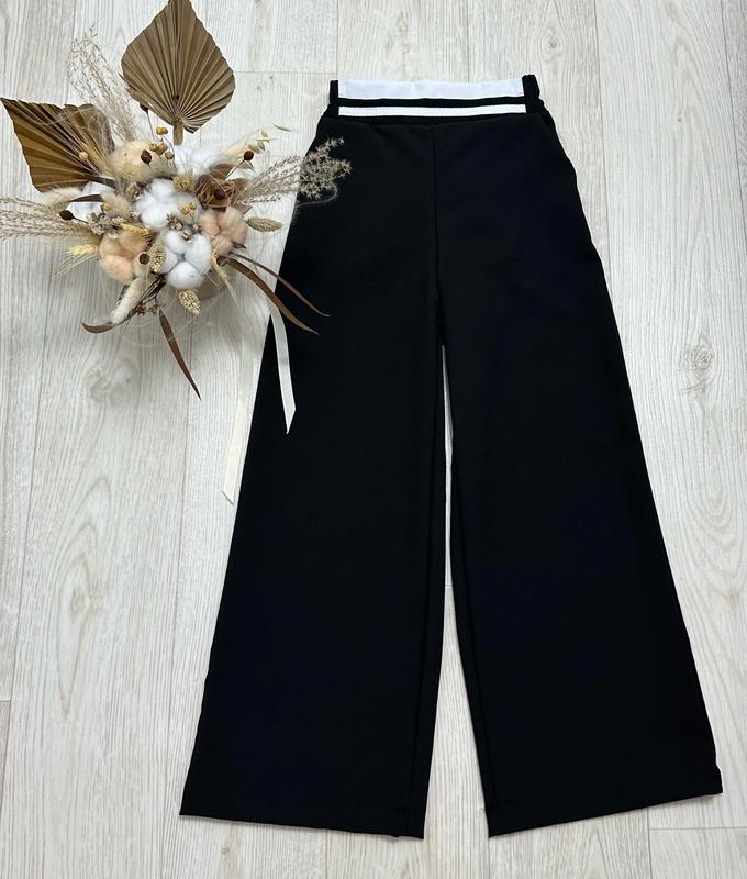 Брюки свободного кроя Пояс по спинке на широкой резинке Спереди стильная вставка Есть боковые карманы Ткань качественная костюмка КАЧЕСТВО ЧУДОВА!! РЕКОМЕНДУЮ!!! 140-146-1шт Длина/шак/пот/поб 140-146-89/63/29/43