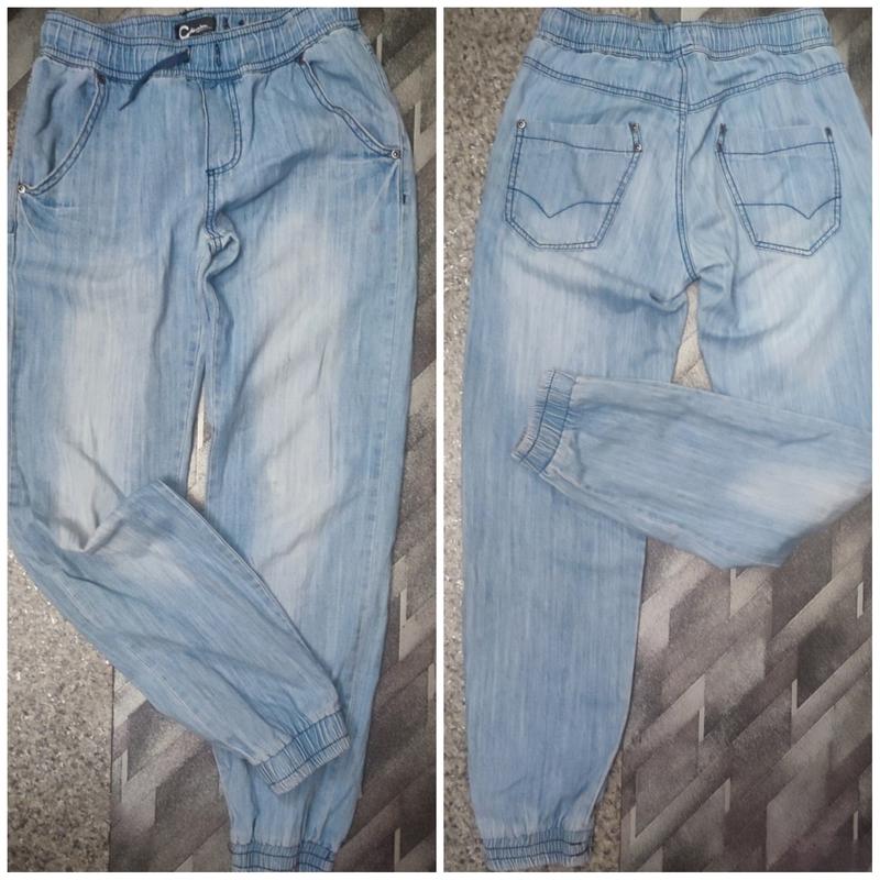 Талия и низ брюки на резинке. Ткань средней плотности. Подойдут на размер XS-S, рост 152-162 Эффект фото 8: на коленях маленькие пятна и дырочка, снаружи не заметно.