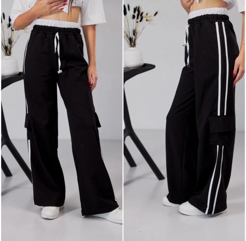 стильные брюки с двойным поясом. Имеют накладные карманы и боковые ленты. Ткань - турецкая двунить. Замеры: длина без белого пояса. 140 длина -88 см, шаг - 66 см, пояс - 25 см, полуобхват бедер - 45 см. 146 длина -92 см, шаг - 68 см, пояс - 27 см, полуобхват бедер - 46см. 152 длина -95 см, шаг - 70 см, пояс - 28 см, полуобхват бедер - 48 см. Мс