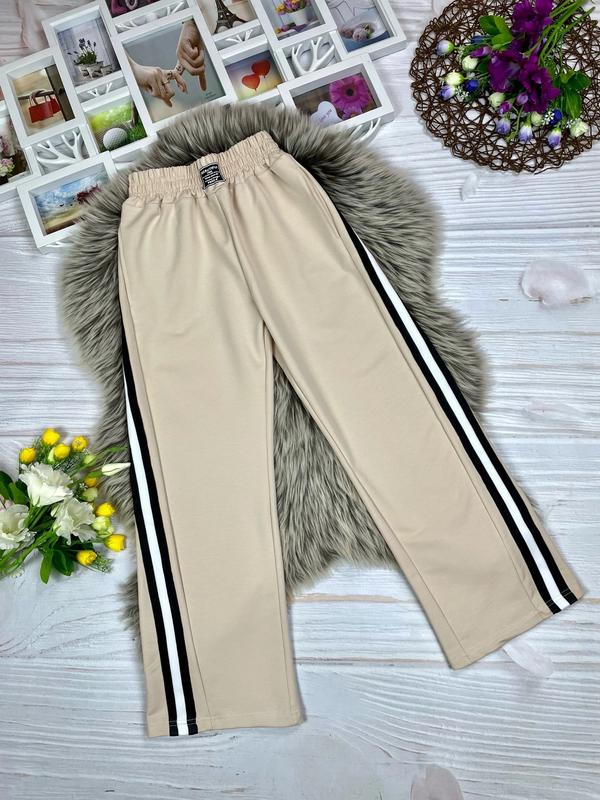 В наличии 💙💛 Ціна 570са Стильные брюки палаццо для красавиц 💗💗💗 модный лампас по бокам пояс широкая резинка, красиво тянется ткань турецкая двухнить пенье Не кошлатиться Замеры: длина/шак/пояс/бедра 140 - 92/66/28/47 152 - 99/73/29/51 164 - 105/78/31/53