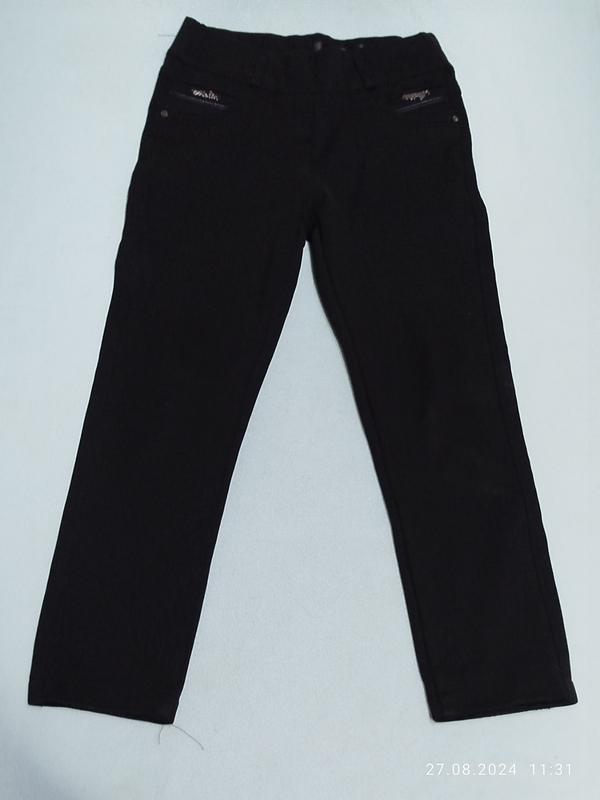 Очень классные немного утеплённые брюки из плотной ткани в отличном состоянии на девочку 6-7 лет. Полуобхват по поясу регулируется резинкой от 28 см до 36 см, длина по внутреннему шву штанины 51 см, длина по внешнему шву штанины 73 см, высота посадки 21 см. Ткань тянется. Модель 4660Т