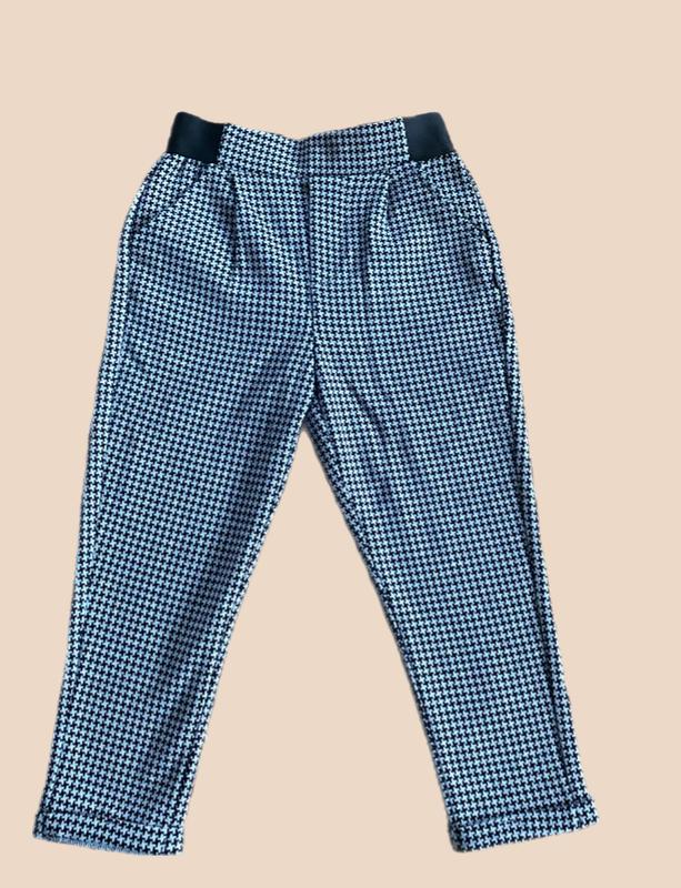 Стильні брюки для наймолодшої леді. Пояс на резинці: 23 см., розтягується до: 29 см. Довжина від пояса: 55 см.; Розмір може коливатися: +/- 1 - 2 см.