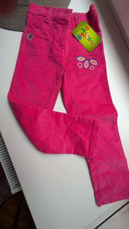 Вельветовые брюки брюки брюки для девочки, размер 104, новые с биркой, потому что пссировался размер ребенку, цвет малиновый очень красивый. Длина изделия - 61сы, шаг 41 см