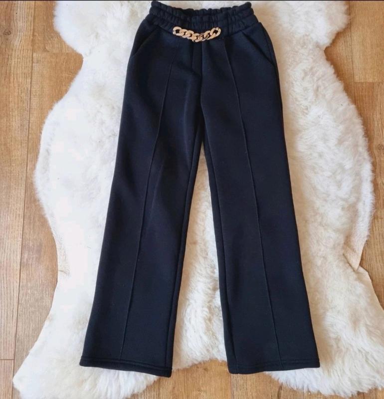 Теплые и стильные брюки палаццо Ткань трехнитка на флисе Не кошлатиться Украшены цепочкой Идеальное лекало, отличная посадка В поясе под резинку КАЧЕСТВО ЧУДОВА!! РЕКОМЕНДУЮ!!! 146 158 164 длина брюк/шар/пояс 134-81/61/25 140-87/65/26 146-89/67/27 152-90/68/28 158-98/76/30 164-102/81/31