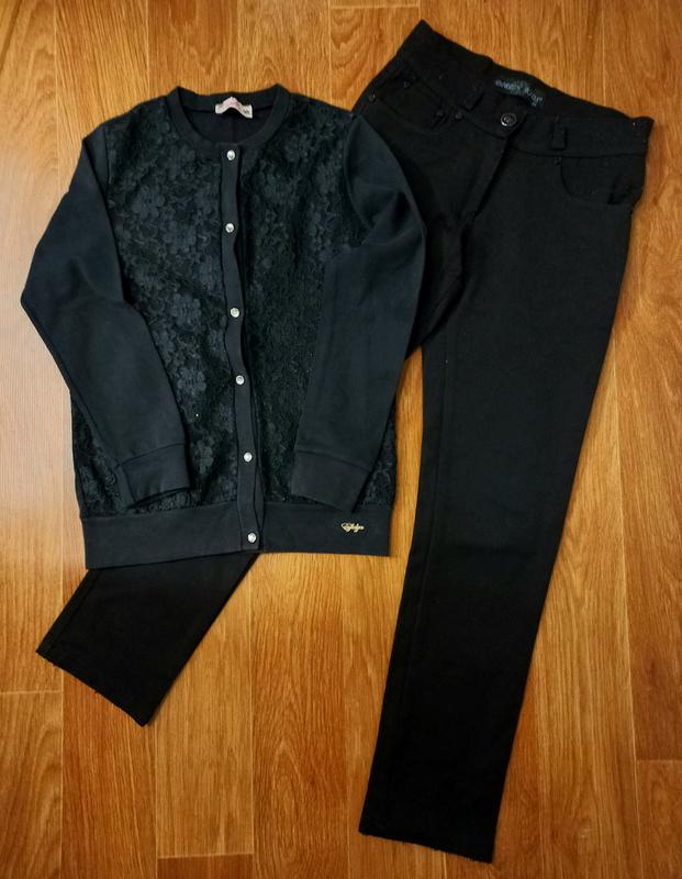 Комплект для девочки на рост 134 см, подойдет для школы, состояние очень хорошее. Замер: полуобхват грудь 39см, рукав 45см, длина кофты 51см. брюки полуобхват талия 30см, полуобхват бедра 38см, длина брюк 82см, шаговой 62,5см.