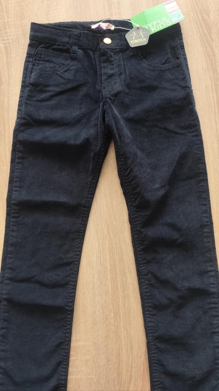 Черные брюки, велюр,фирма Joyful, размер7-8 лет,128см. Длина 79см, пояс полуобхват 34см, регулируется резинкой внутри, бедра полуобхват 39см, замера тянутся в бедрах.