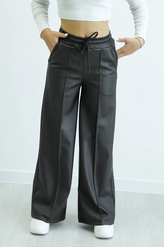 Великолепные стильные палаццо Ткань эко-кожа на велюре Хорошая посадка Есть шнуровка в поясе КАЧЕСТВО ЧУДОВА!! РЕКОМЕНДУЮ!!! длина/шак/пояс/п********** 140-90/63/28 146-93/66/29