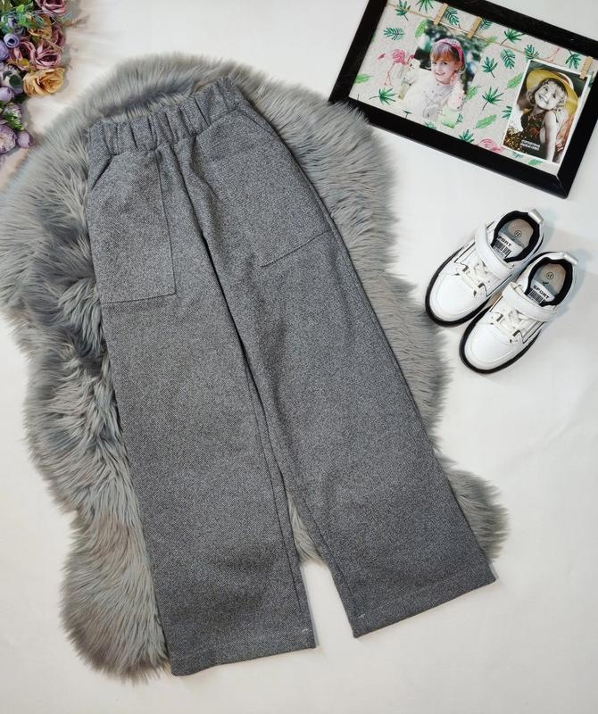 Брючки тепленька шерсть , пояс на резінці накладні кишені . по бічному. заміри- довжина/ пог/ стегна/ пояс 116-79\58\22 134-84/63/43/26 140-88/66/44/28 146-90/68/47/29 152-95/70/49/30 158-98/72/50/30 164-101/75/50/30 116-1шт 134-2шт 140-1шт