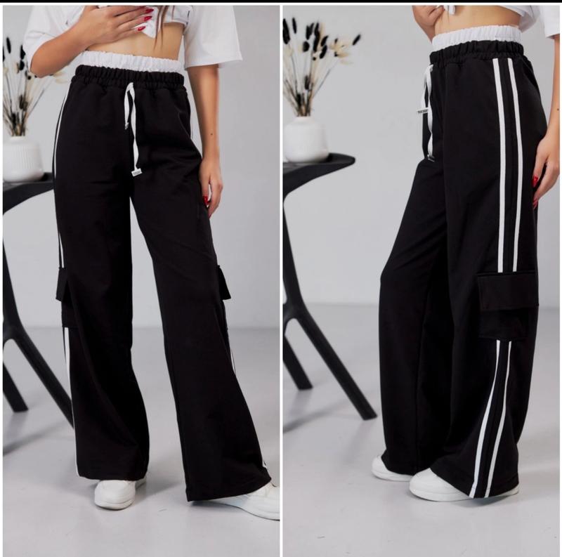 стильные брюки с двойным поясом. Имеют накладные карманы и боковые ленты. Ткань - турецкая двунить. Замеры: длина без белого пояса. 140 длина -88 см, шаг - 66 см, пояс - 25 см, полуобхват бедер - 45 см. 152 длина -95 см, шаг - 70 см, пояс - 28 см, полуобхват бедер - 48 см. Мс