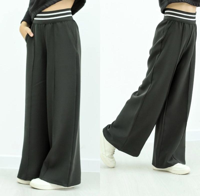 Классические брючки-палаццо Для стильного образу а также на каждый день в поясе широкая резинка, красиво тянется по переду высточка-стрелка ткань брючная средняя плотность Имеет стрейч Рост/длина/шак/пот/поб похибка+-2см 134/87/61/26/38 140/91/64/27/39 146/94/67/28/40 152/98/69/29/41 158/102/72/31/42