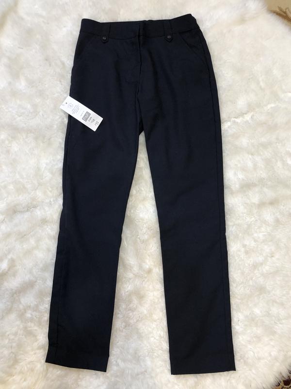 Классические брюки для девочки 12-13 лет. Темно синего цвета близко к черному. Длина по боку 92 см, шаг 70 см, пояс 35 см, бедра 44 - 45 см.