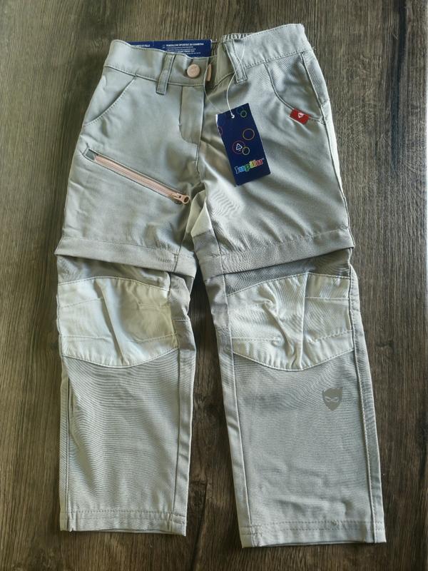 Брюки-шорты-трансформеры для девочки Lupilu Функциональные брюки от бренда Lupilu (Германия). Благодаря современной экологической технологии BIONIC FINISH ECO брюки обладают ветрозащитными, водонепроницаемыми и дышащими свойствами. С боковыми карманами и практичным карманом на молнии. С молниями SGS, чтобы укоротить брюки до длины шорт. С эластичным поясом и застежкой на кнопку и молнию. Оптимальная посадка и стабильность формы благодаря волокну LYCRA® Размеры: 🔸️98 - свет серого цвета 🔸️110 - свет серого цвета