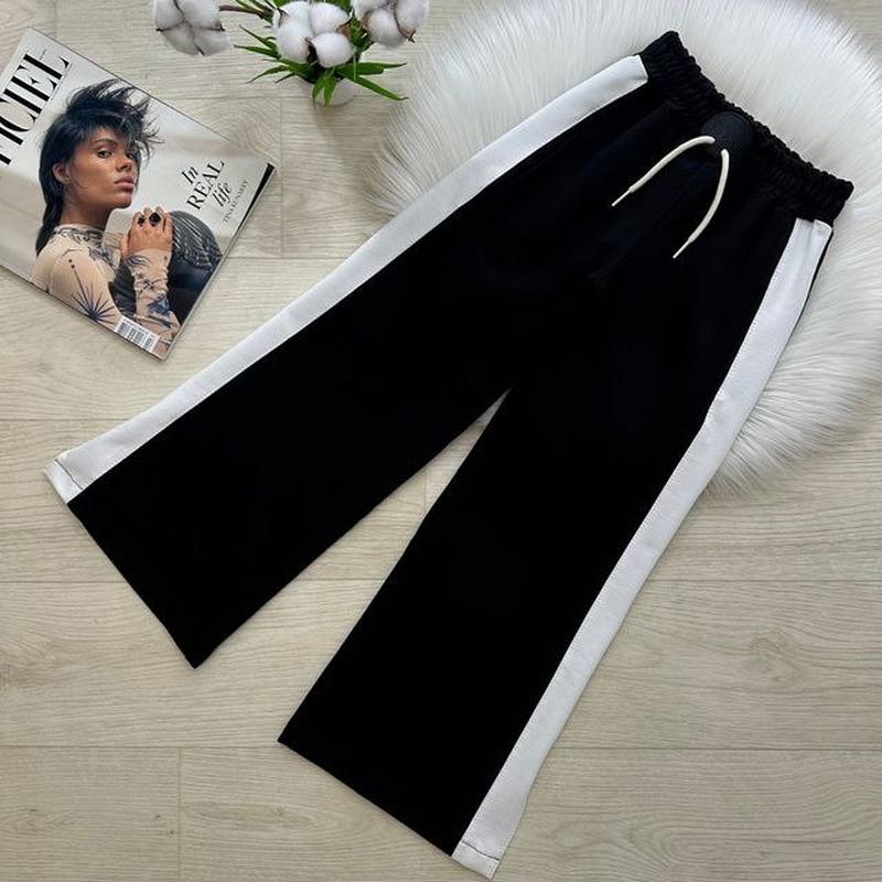 цена 116 🔘 710грн цена 134-146 740🔘 грн Стильные брюки палаццо 😎 с лампасами и разрезами по низу 🤩🤩🤩 Широкая удобная резинка в поясе 👌🏻 Есть кошечки ✔️ Кожаная нашивочка спереди 😍 Ткань: турецкая двунить 👍🏻 Производитель: Украина 🇺🇦 ЗАМІРИ ⤵ +/- 1-2см!!! р.116-длина 71см/ шаг 51см/ ПОС 38см р.134-длина 78см/ шаг 56см/ ПОС 41см р.140-длина 82см/ шаг 60см/ ПОС 43см р.146-длина 85см/ шаг 64см/ ПОС 46см При оформлении заказа через кнопку Купить полная оплата обязательно уточняйте наличие размера