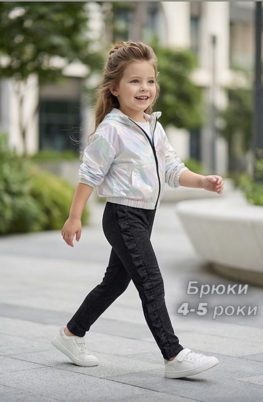 Брюки десь 4-5 років, бірка зрізана. Довжина 56 см, крок 42 см, ширина в поясі 54 см, резинка тягнеться до 70 см Стан ідеальний