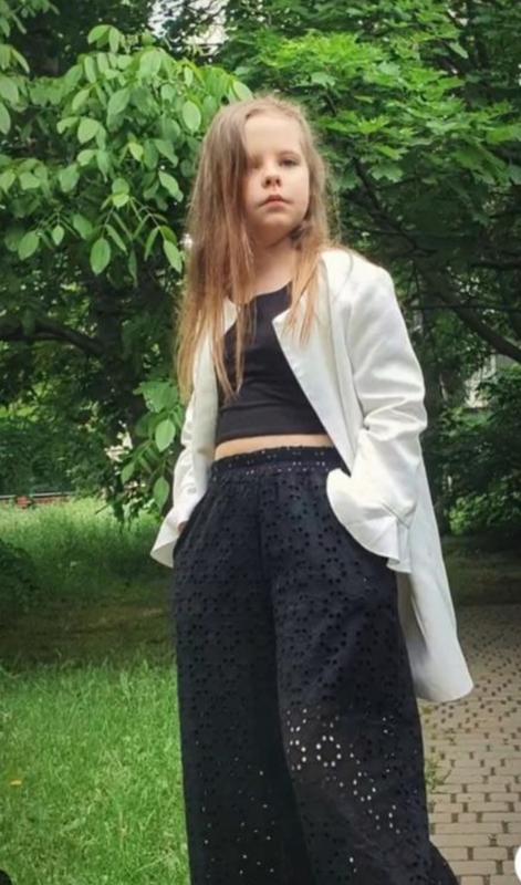 100% коттон, нереально эффектные. Надевали на выпускной. Единый нюанс-срезали берку, колется дол 85, поб 57, шаг 56, пояс 30, ширина штанки 32
