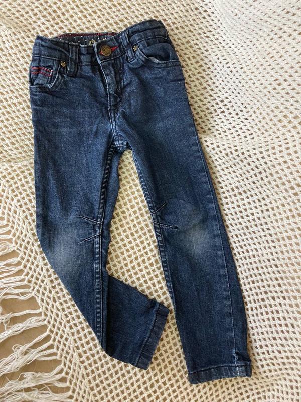 Джинсы узкие для девочки с потертостями намолонов. Трещи тянутся. На возраст 3-4 рочки длина снаружи 56см длина внутреннего шва 40см. Стан - идеальный