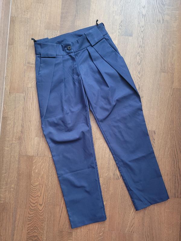 Темно-синие брюки, штаны для девочки на рост 134-140 см в отличном состоянии. После одного ребенка. Довжина 80 см, бедра 40 см, шаг 57 см, пояс 30 см. Застежка - молния + пуговица. Два кармашка по бокам.