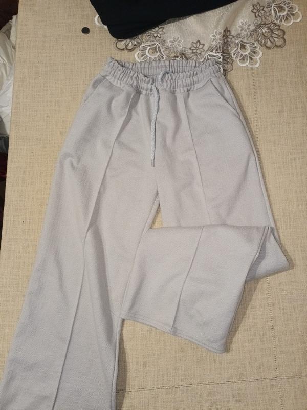 брюки из плотной ткани подойдут на осень, холодную весну светлый цвет клеш длина 90 см резинка в поясе бежевый пол обхват 48 см
