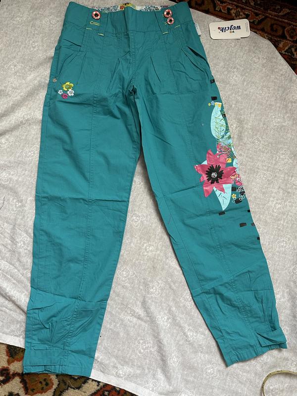 дуже цікаві брюки з котону преміум якості,безліч деталей,аплікація,утяжки на пасі розмір 146 повномірні.Можна підібрати футболку