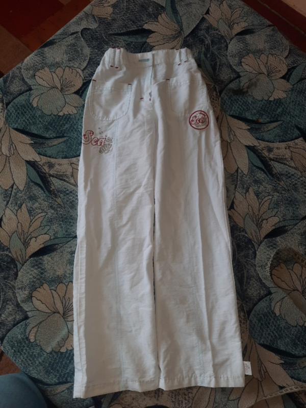 девчачьи белые брючки пояс 30см длина 75 пояс на корректирующей резинке очень легкие летние