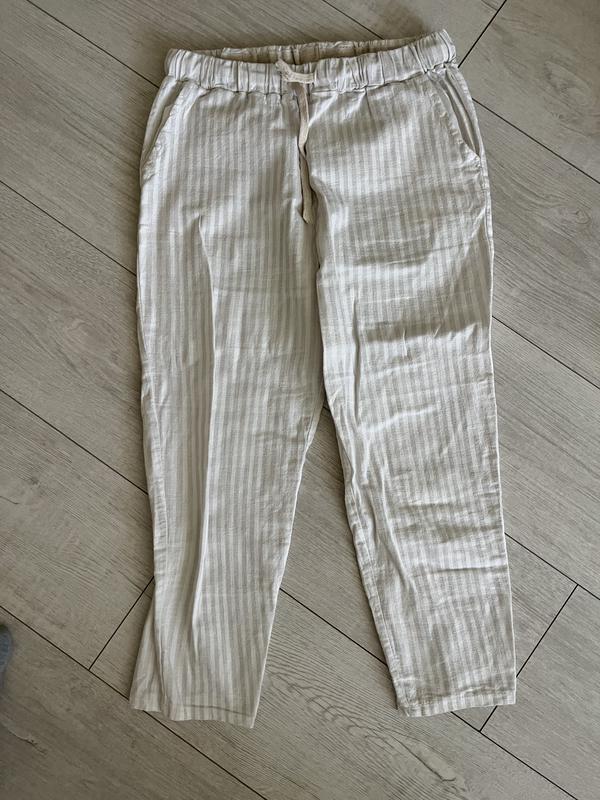 Штани укорочені,з 4 кишеньками тканина під льон натуральна в мілку полосочку, в Дивіться інші оголошення всі речі підійдуть на підлітків, усі потребують розгладження праскою.