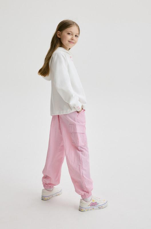 Легкие брюки карго девочке от Reserved. Изготовлены из тоненькой ткани жатки. Имеют карманы По талии эластичная резинка и затяжка шнурком Размер 164 (13 лет)