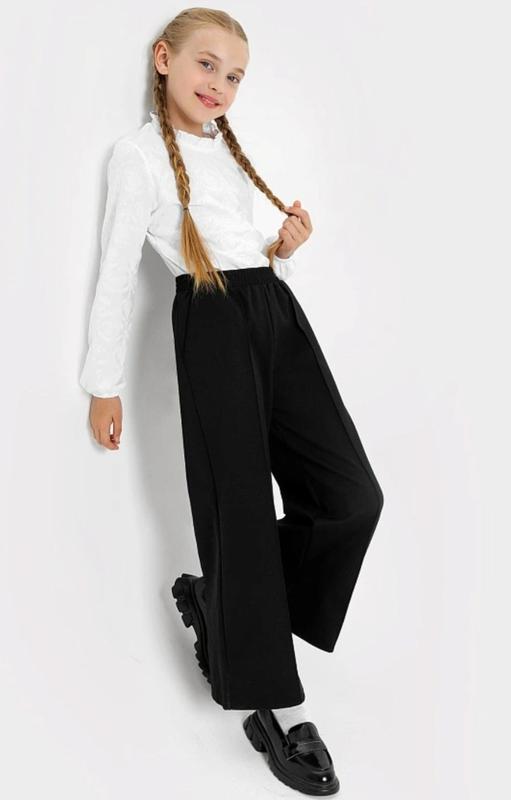 Широкие черные брюки для девушки размером 158/164. Выгодное предложение по привлекательной цене. Талия на резинке. Длина 86/60 Пот 30+ Поб 46 Посадка 30/33 Ширина штанини внизу 27 По дополнительной информации обратитесь.