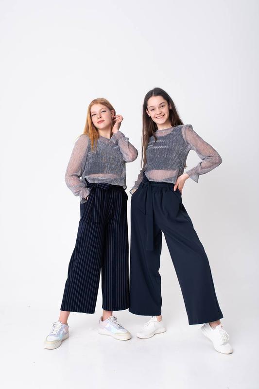 Штани кюлоти ✅ Цена : 710 грн Ткань: тиар Цвет: СИНИЙ Боковые карманы, пояс на резинке Пояс в комплекте 🔹Замеры: пояс / пояс резинка в натяжение/ обхват бедер/ внутренний боковой шов/ длина Рост 134: 49/ 58/ 84/ 50/ 75 Рост 140: 55/ 59/ 85/ 52/ 78 Рост 164: 70/ 85/ 104/ 62/ 90 Цвет : ПОЛОСКА СНИНЕ арт: 1162 🔹Замеры: пояс / пояс резинка в натяжение/ обхват бедер/ внутренний боковой шов/ длина Рост 134: 49/ 58/ 84/ 50/ 75 Рост 140: 55/ 59/ 85/ 52/ 78 #брюки #школа