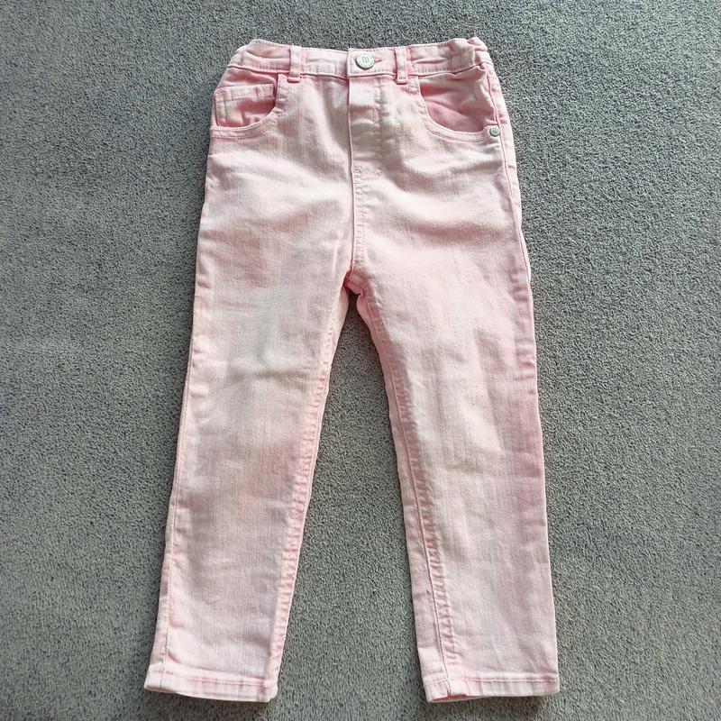 Розовые джинсы для девочки, состояние идеальное, высокая талия, на возраст 3 -4 рочки, тянутся
