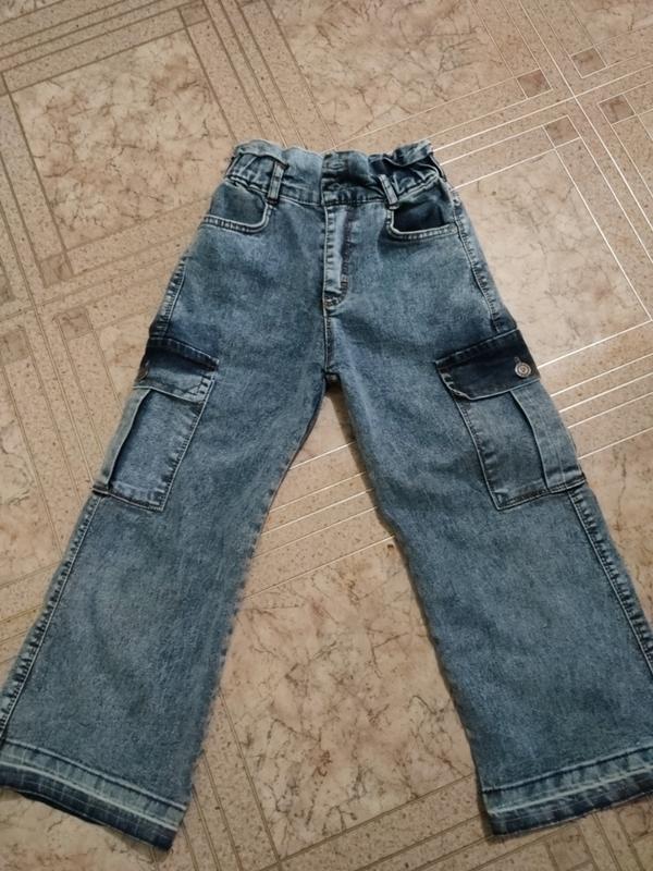 стильные джинсы карго для девочки. длина 70.5 см, шаг 47 см, пояс 24 см, хорошо тянется.
