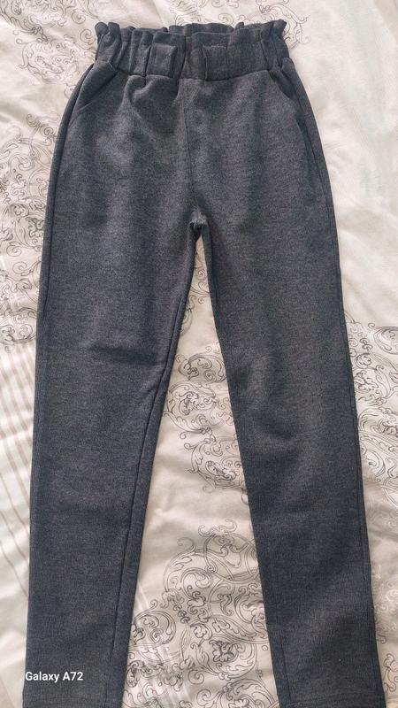 Классные серые брюки на девочку на резинке имеют кармашки плотный материал в рубчик на осень в сам наз нам не выбрал размер Принимали дороже длина 90см пояс на резинке тянется 27см крок 66см
