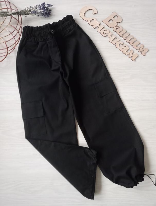 ❤️Хит сезона Невероятно модная в этом сезоне модель штанов КАРТГО с утяжкой, накладные карманы Тканина ДЖИНС КОТТОН КАЧЕСТВО ЧУДОВА! Рекомендуем! замеры: длина/шак/пояс 134-81/61/25 -2шт
