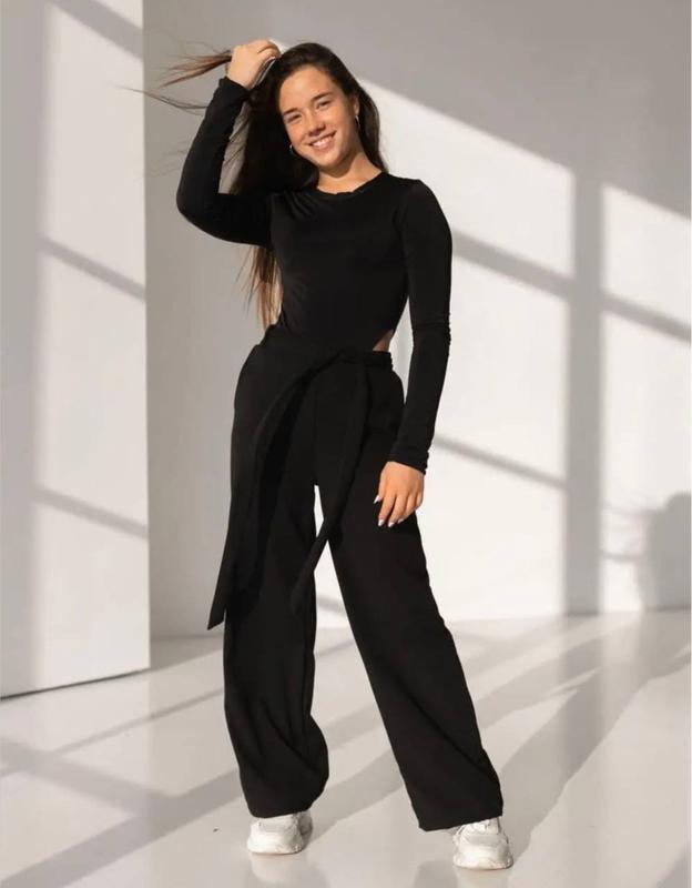 Трендові брюки Палаццо ❤️🛍️ Брюки палаццо класика для красунь 💗Пояс на резинці ,гарно тягнеться та є діючі кишені . Доповнюють брюки пояс який зав'язується та додає шарму🥰 Якісна брючна тканина,ідеальні для школи і на кожен день Розміри:134, 140, 146,152,158,164