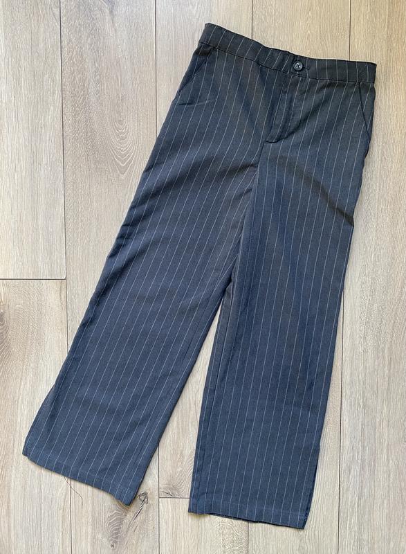 Штани H&M на зріст 134 см. Стан: практично ідеальний, є лиш дві затяжки ззаду (на фото показала). На поясі є утяжка. Заміри: довжина 81 см, крок 57 см, пояс 29 см.