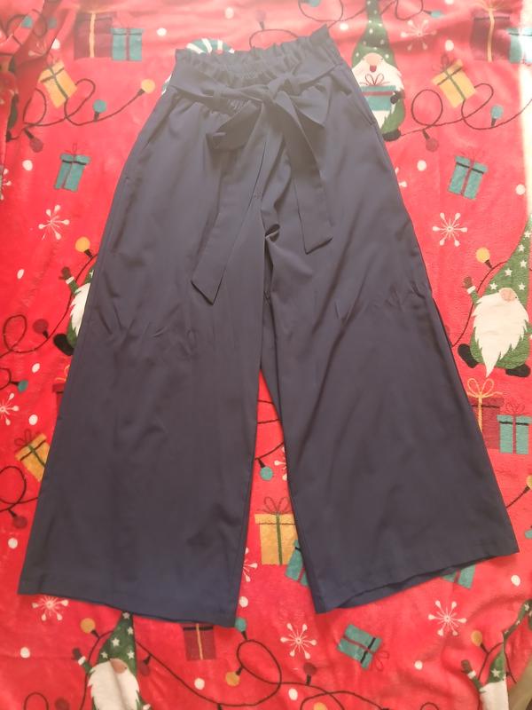 Темно синие брюки типа палаццо на девочку. На талии растягиваются +/- 10 см. Длина от резинки до низа 80см.