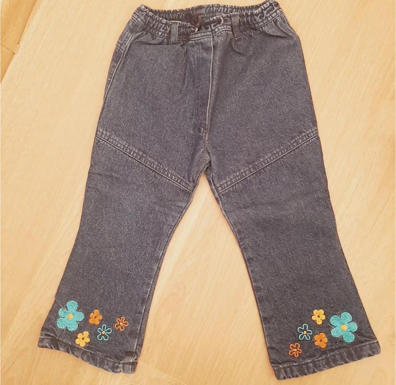 На 2,5-3 р., джинси на підкладці, пояс на резинці, довжина 56 см, обхват талії 52 см