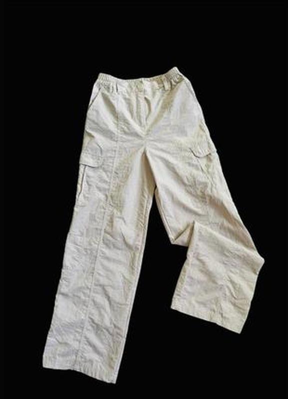 Брюки карго высокая посадка на резинке с карманами из легкого тонкого полиэстера, есть шлевки под пояс Замеры: пояс резинка 28, бедра 40, длина 88/62, посадка 28/35