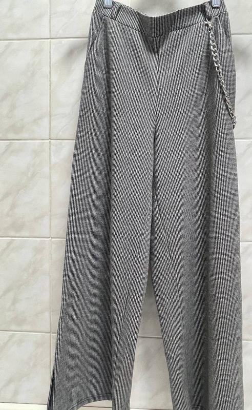 Крутезные кюлоты из очень приятной на ощупь ткани, не кашлатится, ей нет износа)))) по бокам разрезы, есть карманы, украшение снимается. Есть шлейки для пояса. сзади на резиночке, подойдет для любой фигуры. Состояние новых. По наборке размер 152, можно носить и раньше и дольше. длина по боковому шву 94 см внутренний 67 см пояс 31++ для прохладной осени, весны.