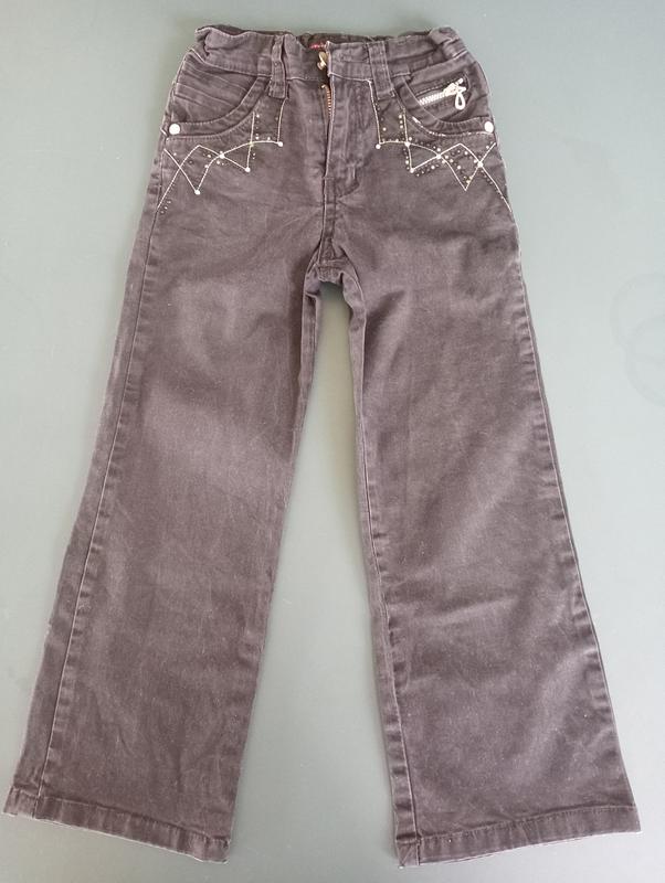 Брюки демисезонные, 95% хлопок На поясе утяжка с возможностью регулировки Розмір на бірці 19 Замеры: ширина по поясу 26 см ширина по стегнах 32 см длина по боковому шву 67 см высота посадки 21 см ширина по низу 18 см В хорошем состоянии
