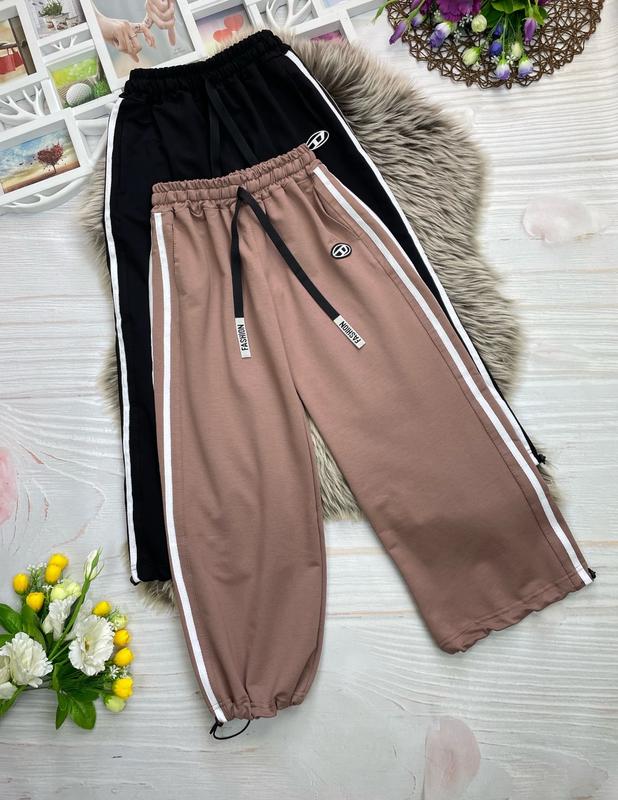 через кнопку купить только полная оплата!!! Стильные трендовые брюки багги Любимая модель девушек 💗 ткань двухнитка пенье в поясе резинка красиво тянется есть карманы, снизу можно затянуть кулиской Замеры: длина/шак/пояс 134 - 80/61/27 146 - 88/67/29 164 - 100/75/31