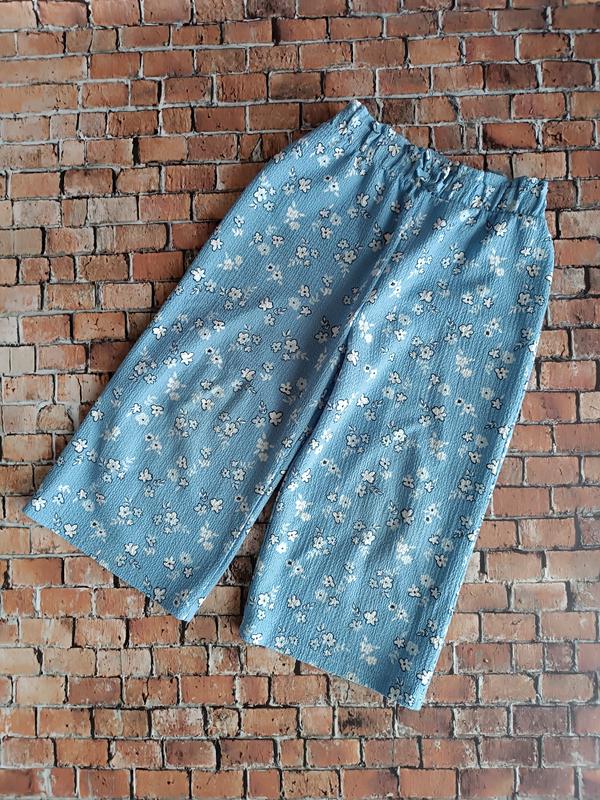 Красивая цветочные брюки палаццо Размер: 5-6 лет Состояние: есть нюанс на колене, пятна, и резинка прошита