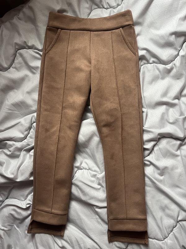 Брюки коричневого кольору. Не утеплені Ззаду подовжені. Заміри на фото. По бірці 122р