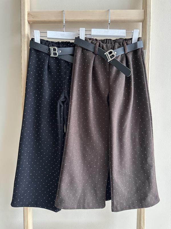 Стильні брюки палаццо на дівчат Тепла тканина, повністю прикрашені камінцями В комплекті йде ремінець В наявності чорний та коричневий колір Добре поєднуються з будь-яким верхом Чорні 104