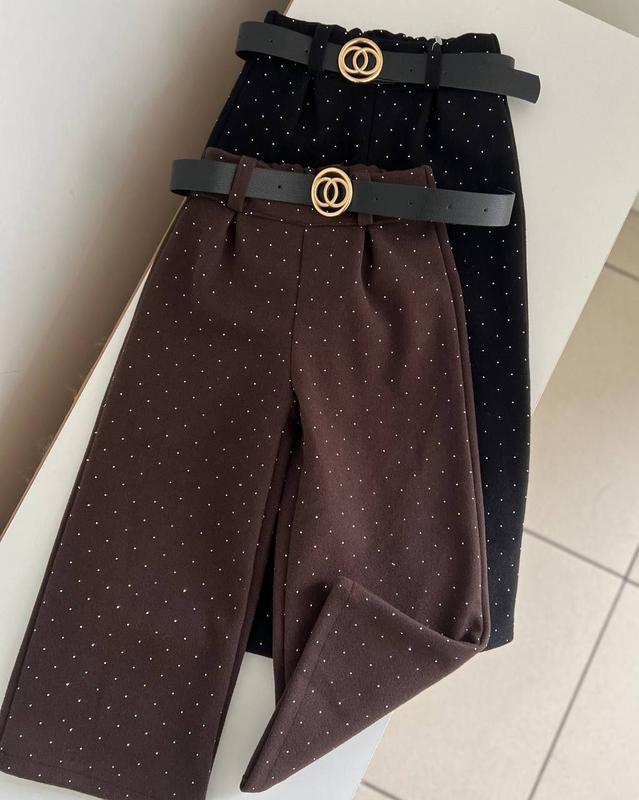 Невероятная новинка для девочек ▪️крутежные брюки с камушками ▪️Тепленькая ткань, ремень в комплекте 🏷️Цена: 980 грн Замер по одной ростовке. 🔻4- длина 61 шаг 41 бедра 35 🔻6- длина 67 шаг 45 бедра 38 🔻8-длина 73 шаг 49 бедра 41 🔻12-длина 81 шаг 58 бедра 43 🔻14-длина 89 шаг 62 бедра 44 110-146 около ▪️N26
