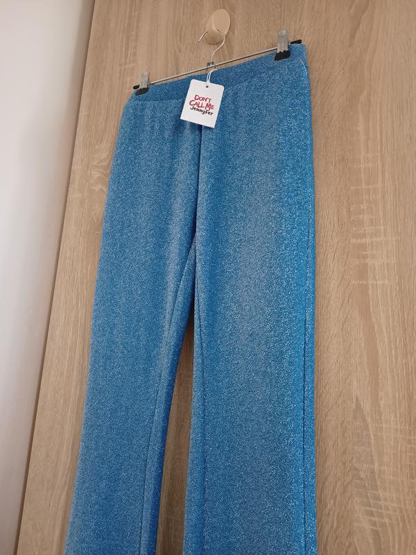 Праздничный вечерний вариант, сценический вариант Отлично для фотосессий Брюки тонкие, без утепления Модель клеш Насыщенный голубой цвет с металлизированной нитью Состав ткани полиамид эластан Размер евро S Длина 103 Длина шагового шва 109 Полу окружность пояса в спокойном состоянии 30 см легко тянется до 44 Полу окружность бедер в спокойном состоянии 42 легко тянется до 60 Посадка перед 22 Посадка зад 25 Пол ширина ноги внизу 26